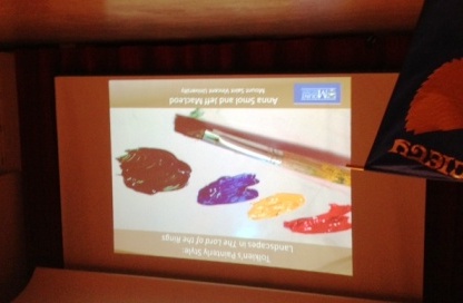 My talk was scheduled in the next round of presentations. I spoke about “Tolkien’s Painterly Style: Landscapes in The Lord of the Rings,” a collaborative project that I am working on with my colleague, Jeff MacLeod, who unfortunately couldn’t be at Mythcon this year.