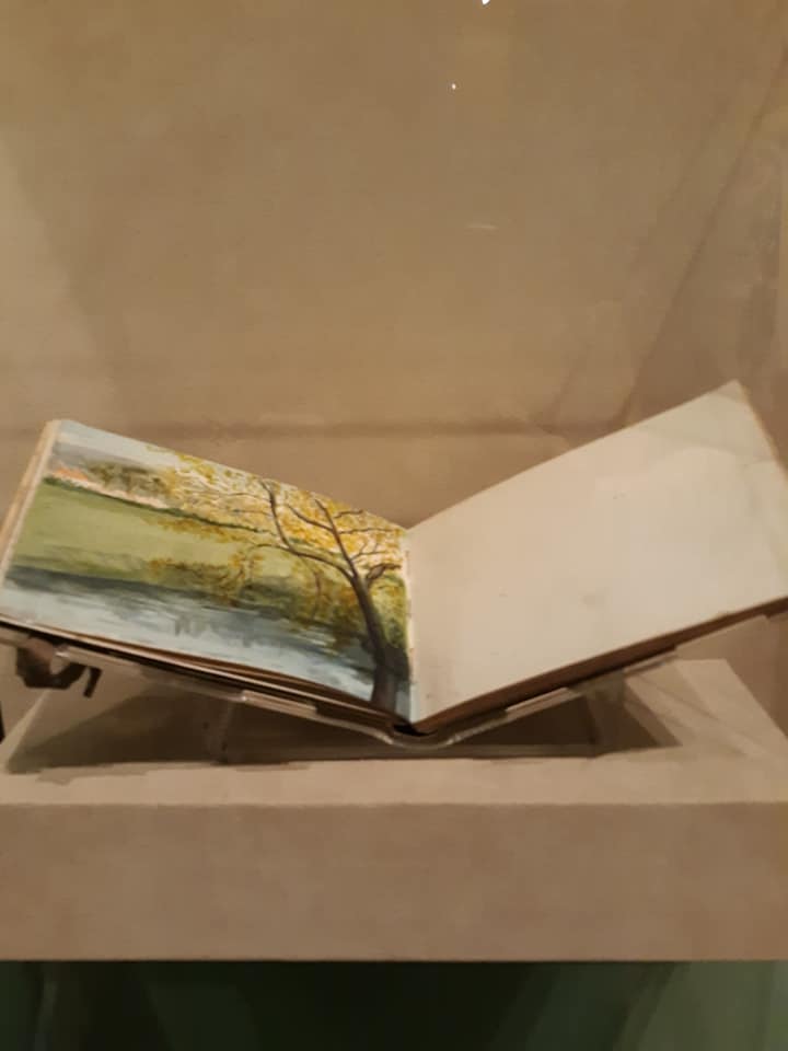 One exhibit that surprised me was Tolkien’s sketchbook opened to the picture, “Alder by a stream.” I had seen the reproduction in Hammond and Scull’s J.R.R. Tolkien: Artist & Illustrator (fig. 7) and it’s in Tolkien: Maker of Middle-earth (page 129). Seeing it in real life, though, revealed a smaller notebook than I had imagined, which made the actual watercolour a lovely little pastoral image. (It measures 90 x 130 mm / 3.5 x 5.2 inches). And it was only then that I realized that it was painted around 1906, when Tolkien was still in his early teens.